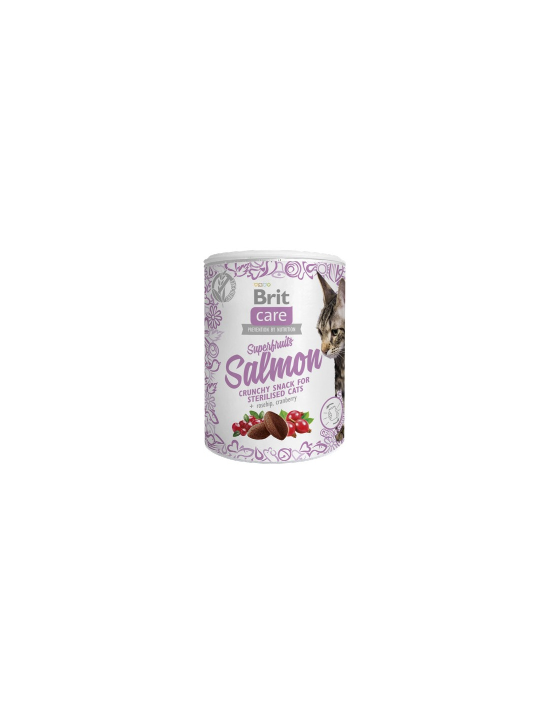 Los Brit Care Cat Snack Superfruits Salmon Sterilized son snacks premium diseñados especialmente para gatos esterilizados, combinando sabor y funcionalidad en un delicioso premio. Elaborados con salmón de alta calidad como ingrediente principal, estos bocados aportan proteínas esenciales que ayudan a mantener la masa muscular y a satisfacer el apetito de forma nutritiva. La fórmula está enriquecida con superfrutas como arándanos y coco, que aportan antioxidantes naturales, vitaminas y minerales beneficiosos para el sistema inmunitario y la salud general de tu gato.