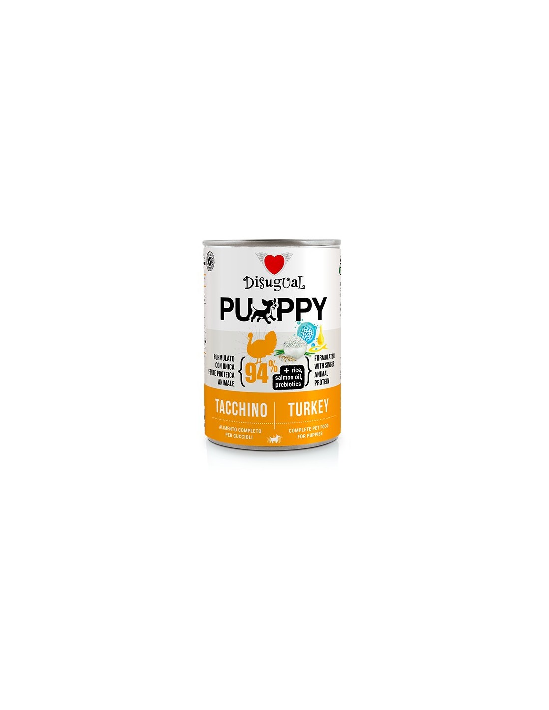 La línea MONOPROTEIN PUPPY TURKEY de DISUGUAL es un alimento húmedo completo especialmente formulado para cachorros y perros jóvenes con sensibilidades alimentarias o digestiones delicadas. Esta receta utiliza únicamente carne de pavo como única fuente de proteína animal, lo que facilita la digestión y reduce la probabilidad de reacciones adversas a múltiples proteínas. La carne de pavo aporta proteínas de alta calidad y aminoácidos esenciales que favorecen el desarrollo muscular, el crecimiento saludable y la energía necesaria durante la etapa de cachorro.