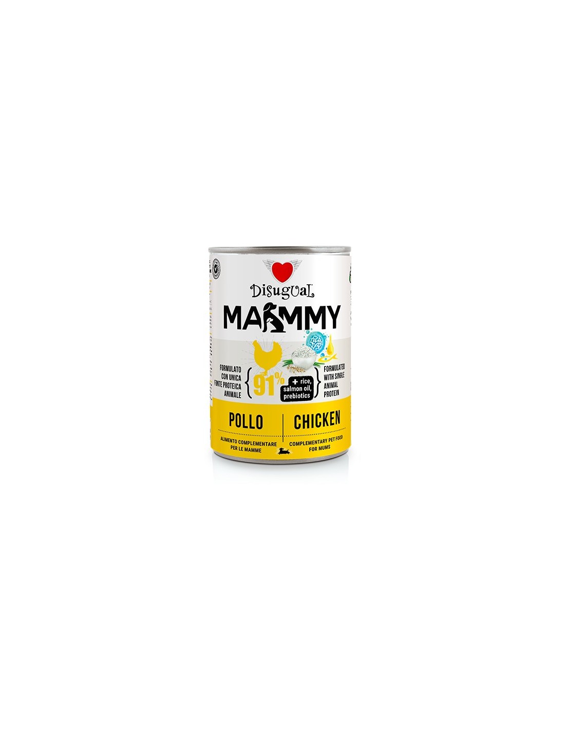 La línea MONOPROTEIN MAMMY CHICKEN de DISUGUAL es un alimento húmedo completo especialmente formulado para perras gestantes, lactantes o en recuperación postparto, con necesidades nutricionales elevadas. Esta receta utiliza únicamente carne de pollo como única fuente de proteína animal, lo que facilita la digestión y reduce la probabilidad de reacciones adversas. El pollo aporta proteínas de alta calidad y aminoácidos esenciales que contribuyen al mantenimiento de la masa muscular, la energía diaria y la salud general de la madre, así como al correcto desarrollo de los cachorros durante la lactancia.