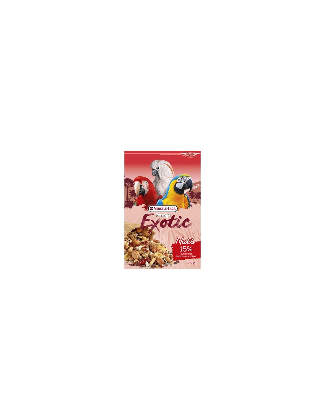 La fórmula incluye una variedad de nueces cuidadosamente escogidas, como almendras, avellanas y nueces de Brasil, que proporcionan energía duradera, favorecen un sistema inmunitario fuerte y contribuyen al mantenimiento de un plumaje brillante y resistente. Además, su textura natural estimula el comportamiento de picoteo y búsqueda de alimento, ayudando a mantener la mente activa y reducir el estrés.