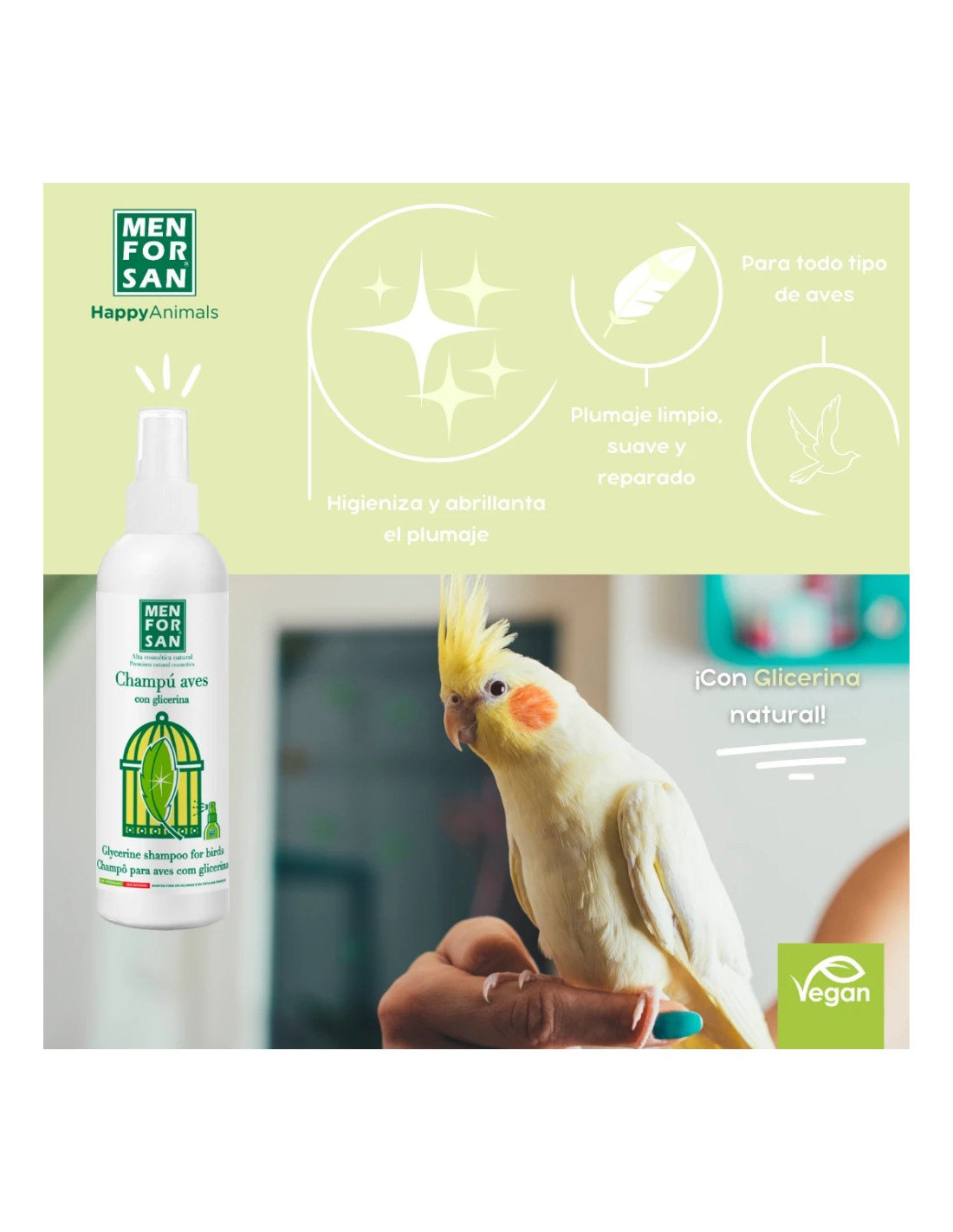 Cuida el plumaje de tus aves con el Champú Abrillantador de Menforsan, especialmente formulado para limpiar, hidratar y dar brillo a sus plumas. Gracias a su contenido en glicerina, limpia suavemente sin dañar la estructura de las plumas y ayuda a mantenerlas suaves, flexibles y con un aspecto saludable.
