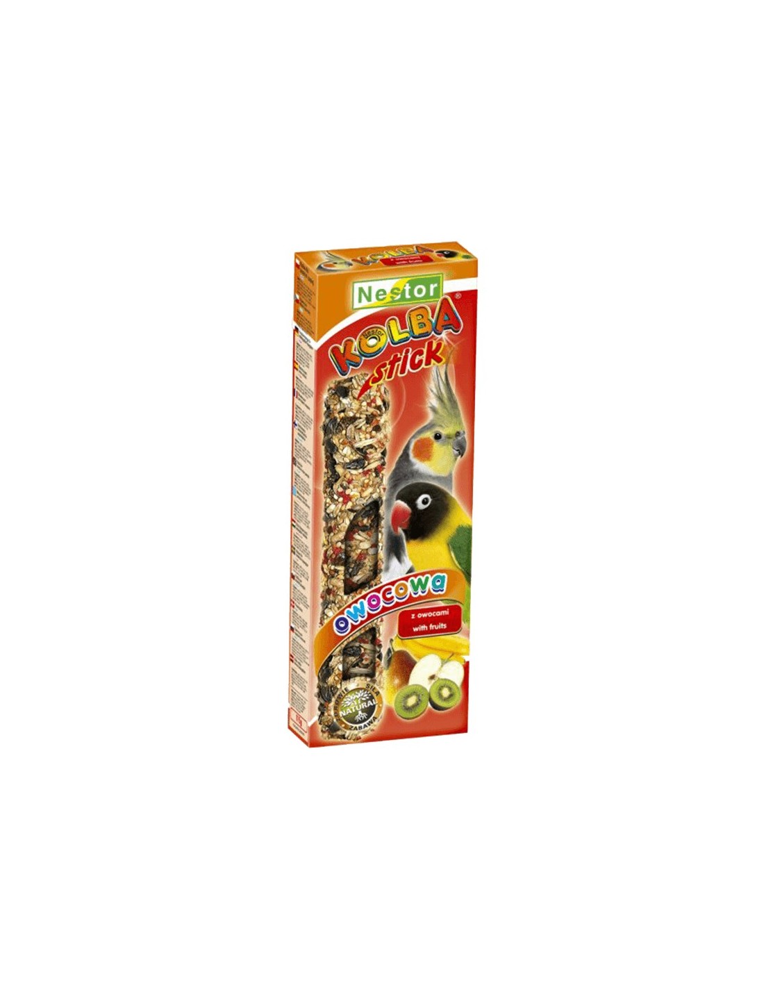 Nestor Stick con Frutas para Agapornis y Ninfas es un complemento alimenticio delicioso y nutritivo, especialmente diseñado para satisfacer las necesidades de aves como agapornis y ninfas. Elaborado con una cuidada selección de semillas de alta calidad y enriquecido con frutas naturales, este stick ofrece una combinación equilibrada de sabor y aporte energético, ideal para mantener a tus aves activas y saludables.
