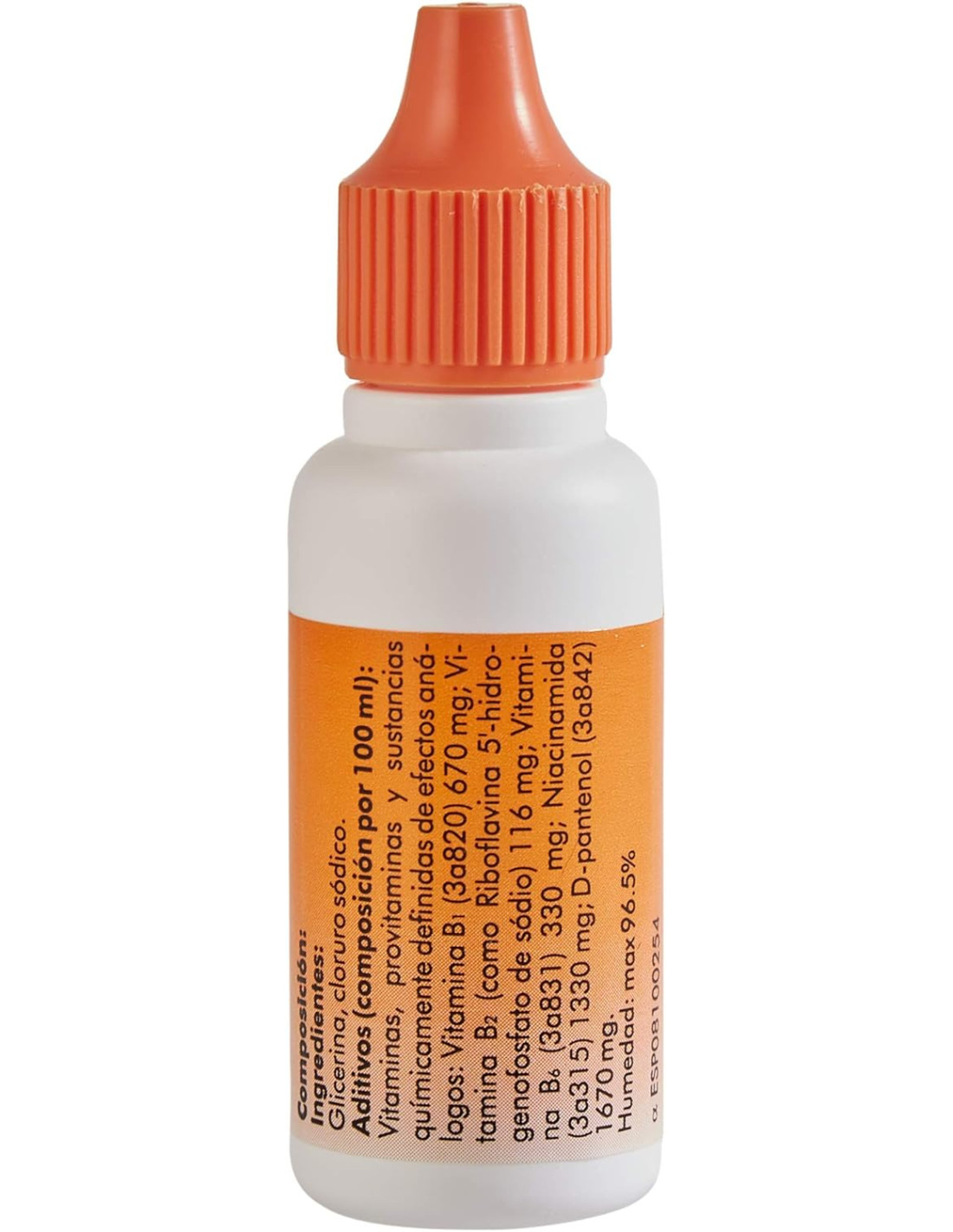 Tabernil Complejo B del Laboratorios DFV es un suplemento vitamínico formulado con vitaminas del grupo B, esenciales para el correcto funcionamiento del metabolismo y el mantenimiento del sistema nervioso en aves ornamentales y de compañía. Está especialmente indicado en situaciones de carencias vitamínicas, convalecencia, estrés, muda o tras tratamientos antibióticos, ayudando a recuperar la vitalidad y el apetito.