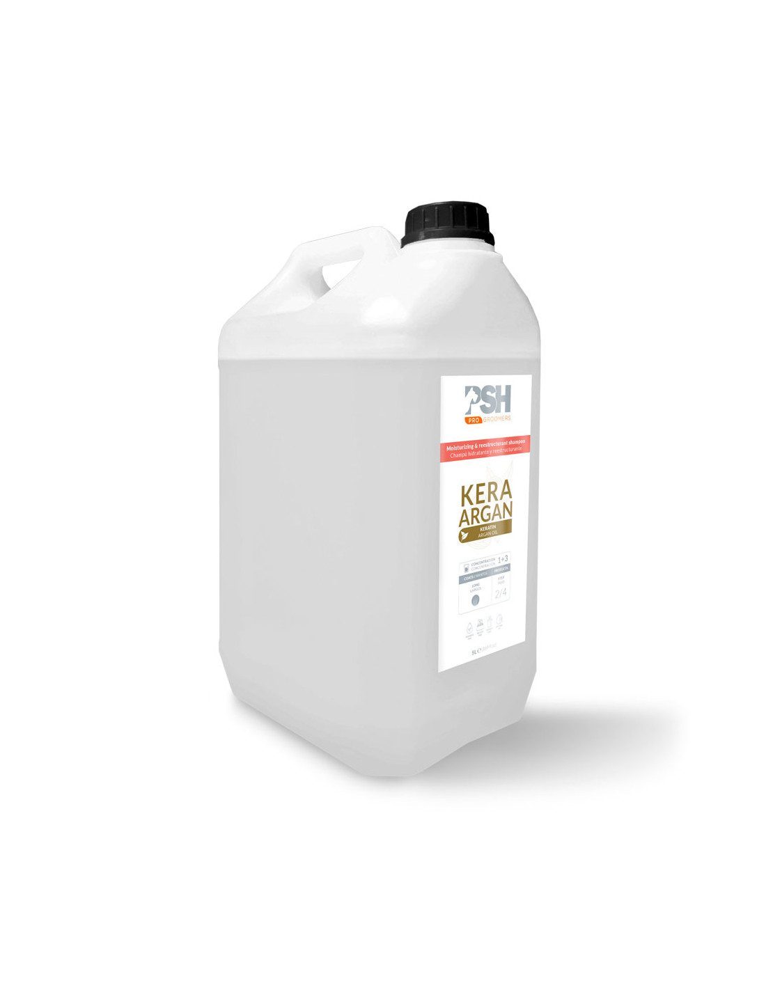 PSH Champú Kera Argan es un champú profesional especialmente formulado para perros y gatos con pelaje seco, dañado o sin brillo. Su fórmula combina keratina y aceite de argán, aportando hidratación, nutrición y reparación profunda desde la raíz hasta las puntas.