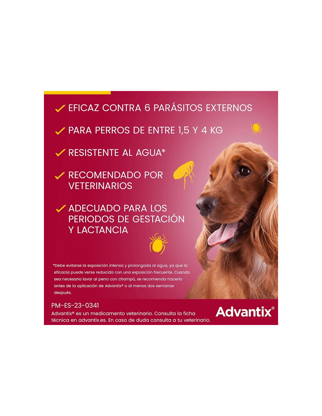Advantix Pipeta 25-40 kg es un tratamiento tópico de alta eficacia diseñado para proteger a tu perro de pulgas, garrapatas, mosquitos y piojos, combinando prevención y tratamiento en un solo producto confiable. Este envase clínico contiene 24 pipetas de 4 ml, lo que lo hace ideal para clínicas veterinarias, criadores o familias con varios perros, asegurando que siempre tengas suficiente suministro para mantener la protección continua de tus mascotas. Su fórmula avanzada actúa de manera rápida y efectiva, eliminando pulgas adultas y larvas antes de que puedan reproducirse, controlando así las infestaciones desde la raíz y evitando reinfestaciones futuras.