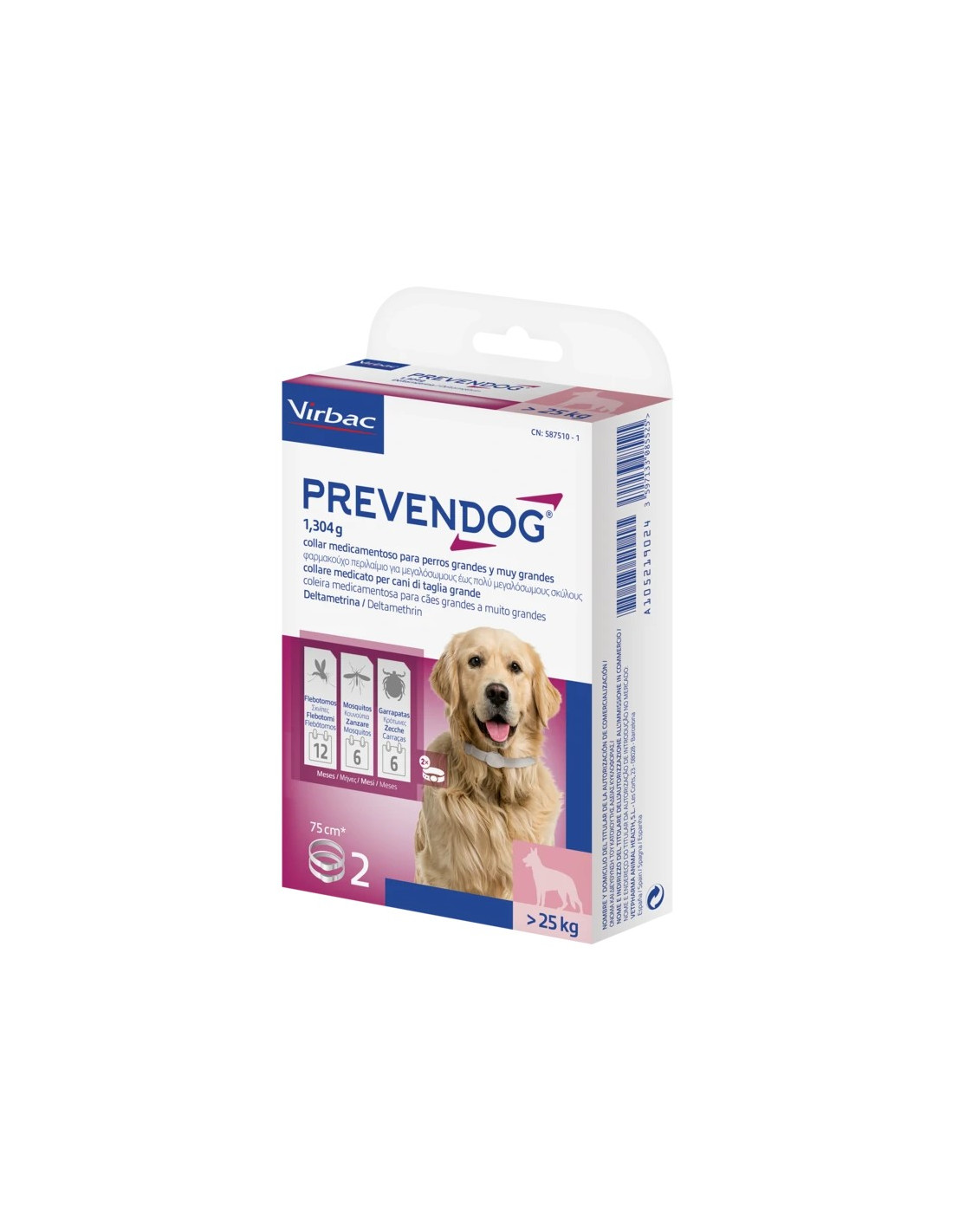 El collar antiparasitario Virbac Prevendog ofrece una protección eficaz y prolongada para perros frente a pulgas, garrapatas, mosquitos y flebótomos, incluyendo los vectores de enfermedades graves como la leishmaniosis canina. Su principio activo, deltametrina, se libera gradualmente sobre toda la superficie del cuerpo, proporcionando una barrera repelente y acaricida que mantiene a la mascota protegida durante 6 a 8 meses, sin necesidad de aplicaciones frecuentes.