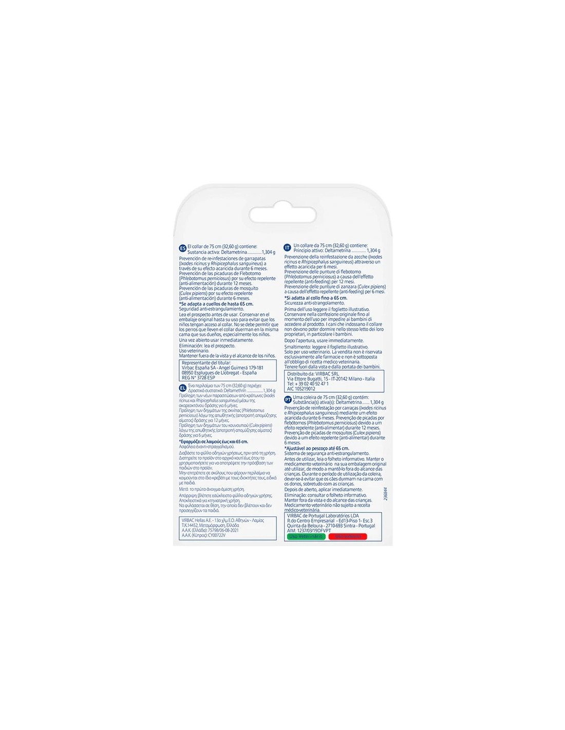 ACTUACIÓN: Ofrece protección frente a garrapatas y mosquitosde de hasta 6 meses y protección frente a los flebotomos de hasta 5 meses.