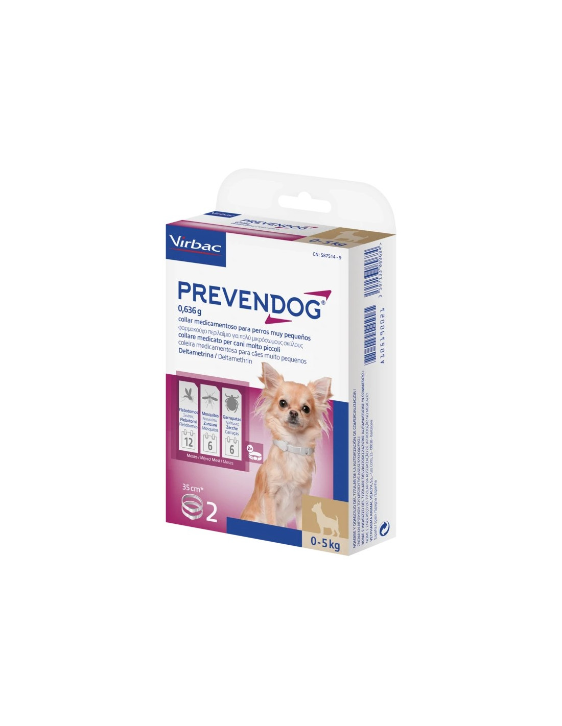 El collar antiparasitario Virbac Prevendog ofrece una protección eficaz y prolongada para perros frente a pulgas, garrapatas, mosquitos y flebótomos, incluyendo los vectores de enfermedades graves como la leishmaniosis canina. Su principio activo, deltametrina, se libera gradualmente sobre toda la superficie del cuerpo, proporcionando una barrera repelente y acaricida que mantiene a la mascota protegida durante 6 a 8 meses, sin necesidad de aplicaciones frecuentes.