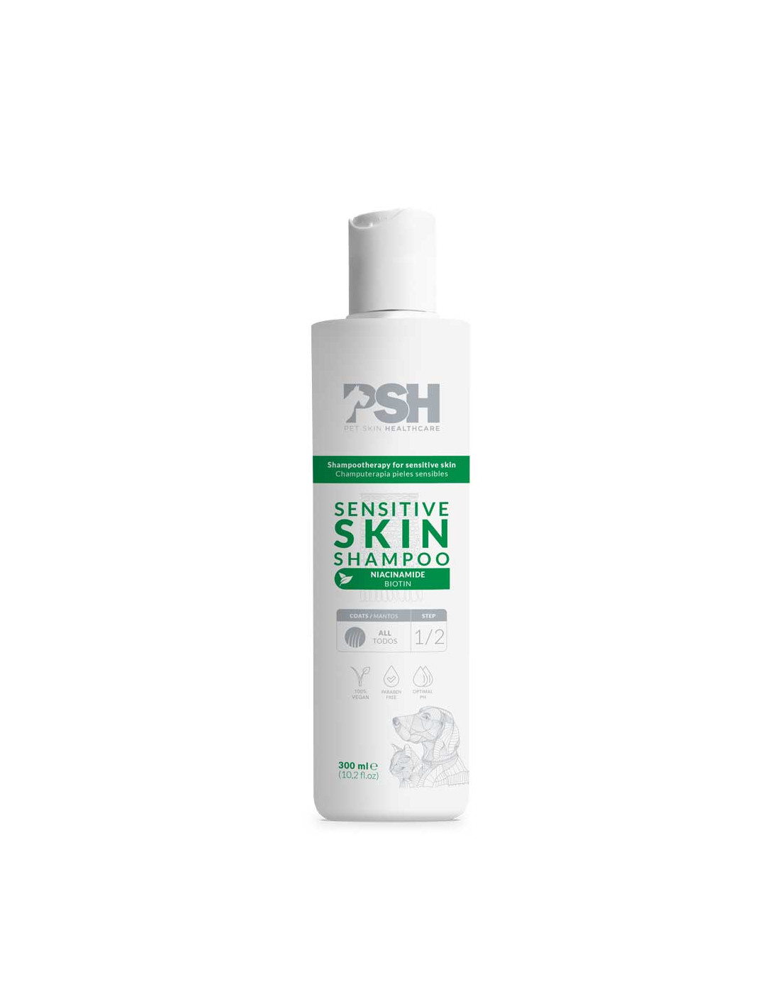 El PSH Champú Sensitive Hypoallergenic Ritual está especialmente formulado para animales con piel sensible, reactiva o con tendencia a alergias. Su fórmula hipoalergénica proporciona una limpieza suave y eficaz, ayudando a calmar la piel y a mantener el equilibrio natural del manto.