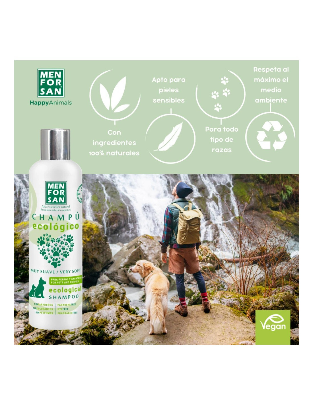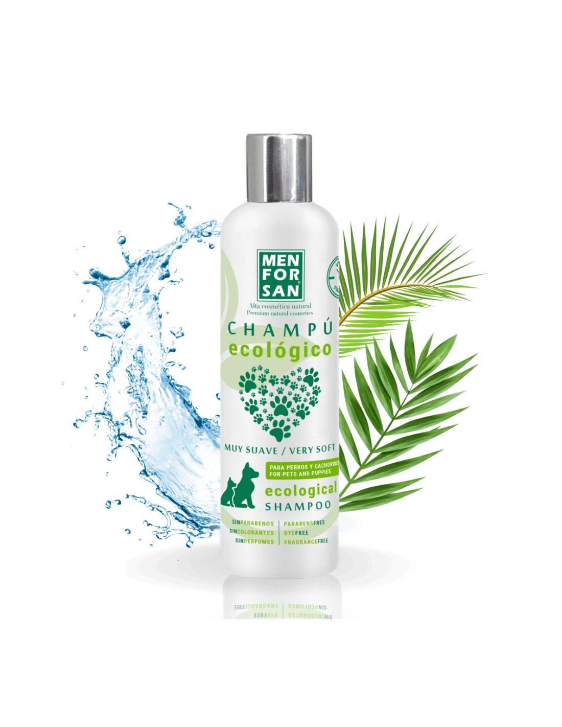 El Champú Ecológico Muy Suave de Menforsan ha sido especialmente formulado para limpiar y cuidar delicadamente el pelaje de perros y cachorros, respetando su piel sensible y manteniendo el equilibrio natural del manto. Su composición ecológica lo hace ideal para quienes buscan un producto respetuoso con el medio ambiente y seguro para la salud de su mascota.