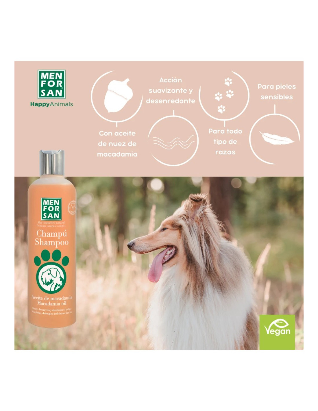 El Champú con Aceite de Nuez de Macadamia de Menforsan ha sido cuidadosamente formulado para nutrir, hidratar y suavizar el pelaje de perros, aportando un brillo natural y saludable. Gracias a su fórmula enriquecida con aceite de macadamia, este champú proporciona una hidratación profunda, ideal para mantener la piel y el pelo de tu mascota suaves, sedosos y protegidos frente a la sequedad o el daño causado por el lavado frecuente.