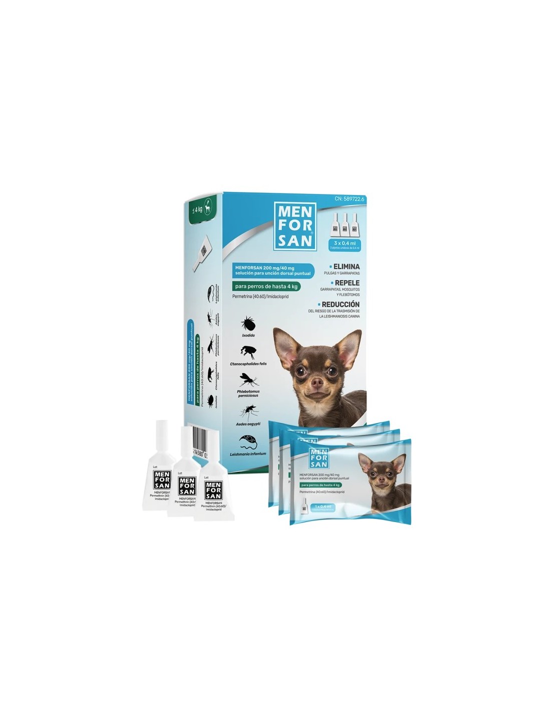 Asegura el bienestar y la protección de tu perro pequeño con las pipetas antiparasitarias Menforsan diseñadas especialmente para perros de menos de 4 kg. Este tratamiento tópico es una solución eficaz y práctica para mantener a tu mascota libre de pulgas, garrapatas y mosquitos, además de ayudar a prevenir enfermedades transmitidas por estos parásitos.