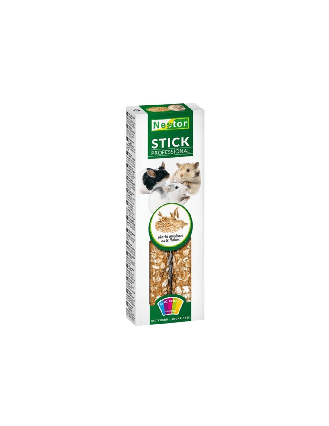 El NESTOR Stick Professional Copos de Avena para conejos y roedores es un complemento alimenticio de alta calidad diseñado para enriquecer la dieta diaria de tus pequeñas mascotas con sabor, nutrición y estimulación. Creado por Nestor, este stick combina ingredientes seleccionados con copos de avena, una fuente natural de energía, fibra y nutrientes esenciales que aportan bienestar y vitalidad a conejos, cobayas, hámsters y otros roedores.