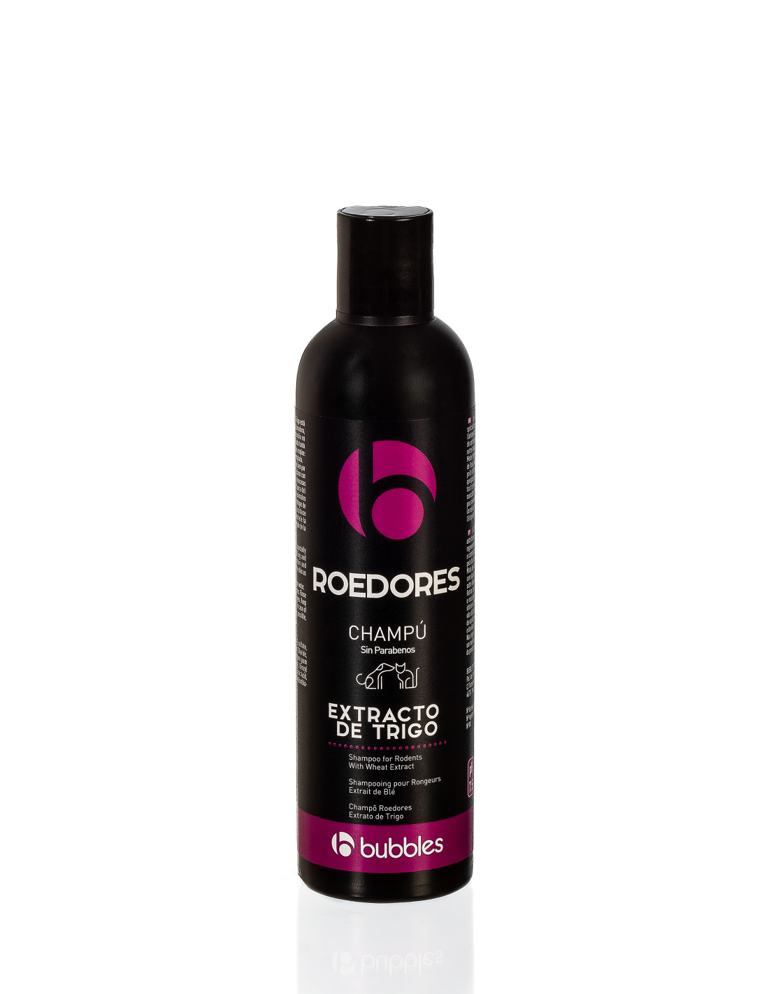 El Champú Roedores con Extracto de Trigo de Bubbles está especialmente formulado para limpiar y proteger la piel y el pelaje de roedores domésticos como hámsters, cobayas, chinchillas y conejos pequeños. Su fórmula delicada con extracto de trigo hidrata, nutre y suaviza el pelaje, dejando a tu mascota limpia, brillante y con un tacto sedoso.