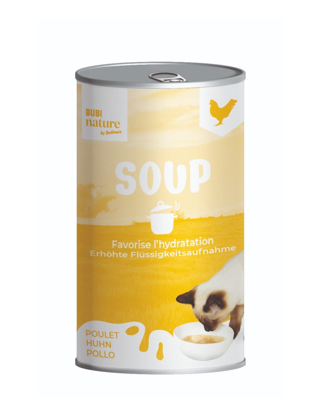 Deliciosas sopas elaboradas con productos sabrosos y de calidad. Ya sabemos que es muy importante la hidratación para el bienestar renal de los gatos. Por ello, las sopas Bubi Nature, gracias a su elaboración con un 95% de caldo, ayudan a mantener hidratados a nuestros felinos. Sin conservantes ni colorantes, pero sí contiene taurina; un componente esencial para su dieta que proporciona bienestar general.