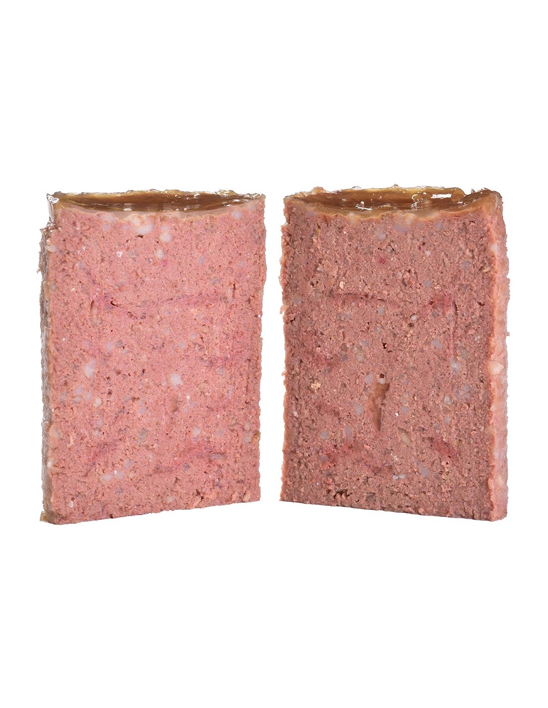 COMPOSICIÓN: Cordero (carne y órganos, 70 %), arroz (4 %), almidón de guisantes (3 %), fibra de guisantes (1 %).
