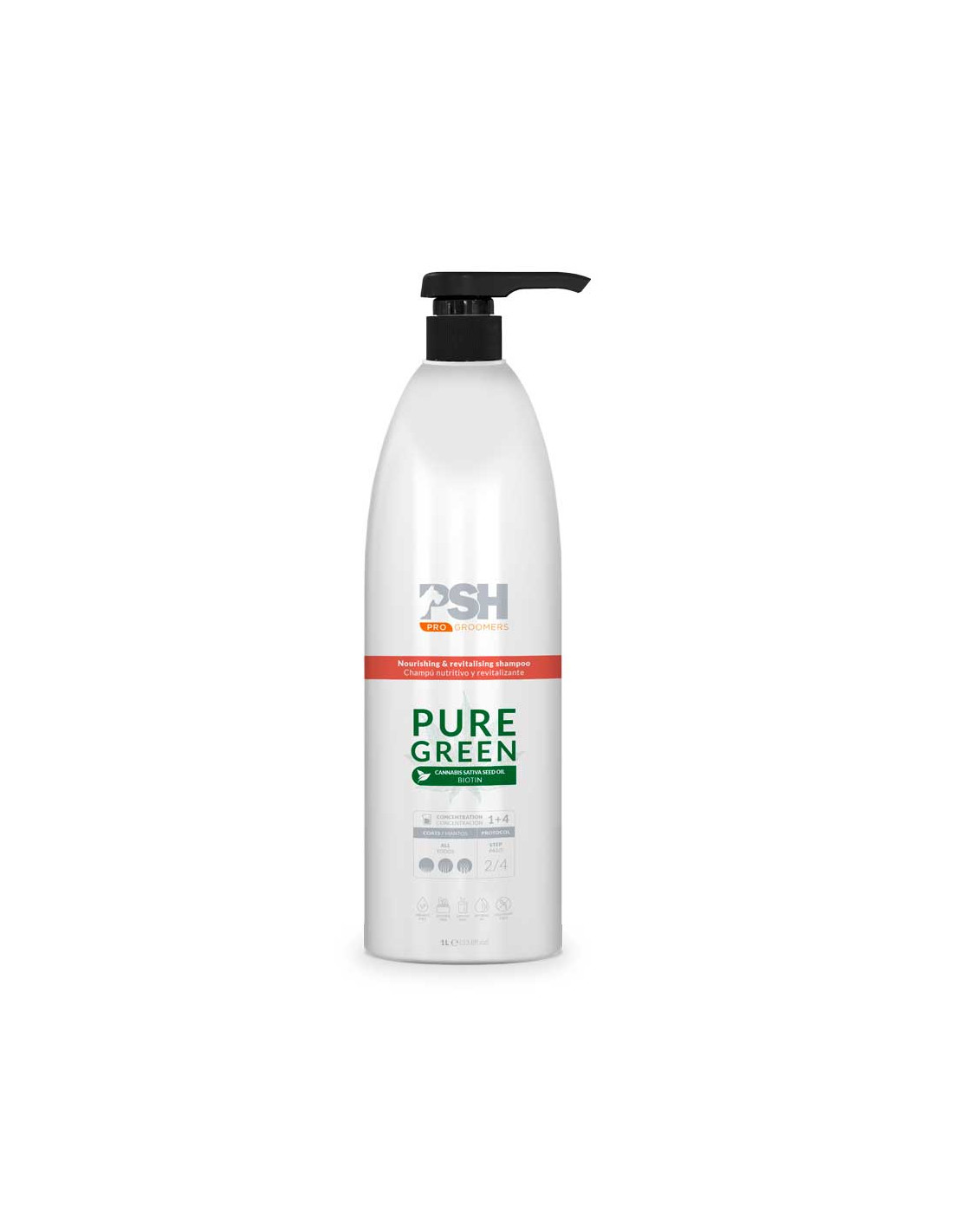 PSH Champú Pure Green CBD Fusion es un champú profesional enriquecido con aceite de cannabidiol (CBD) diseñado para cuidar en profundidad el pelaje y la piel de perros y gatos. Su fórmula avanzada combina CBD, aminoácidos, oligoelementos y antioxidantes que trabajan de forma sinérgica para regular la producción de sebo, hidratar la piel y fortalecer el pelo, ayudando además a prevenir la caída y la irritación.