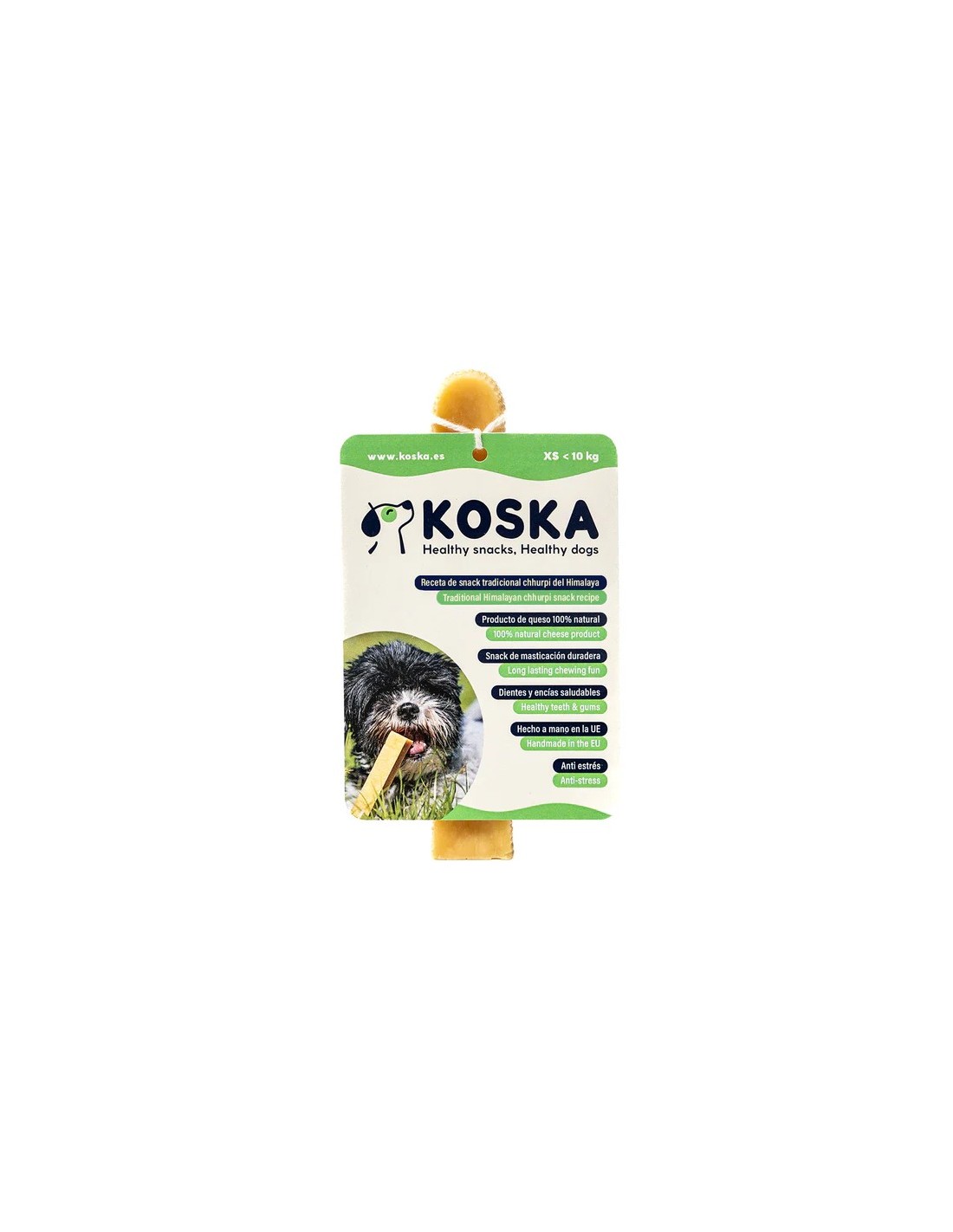 La barrita de queso KOSKA XS está diseñada para perros extra pequeños que pesan hasta 10 kg.