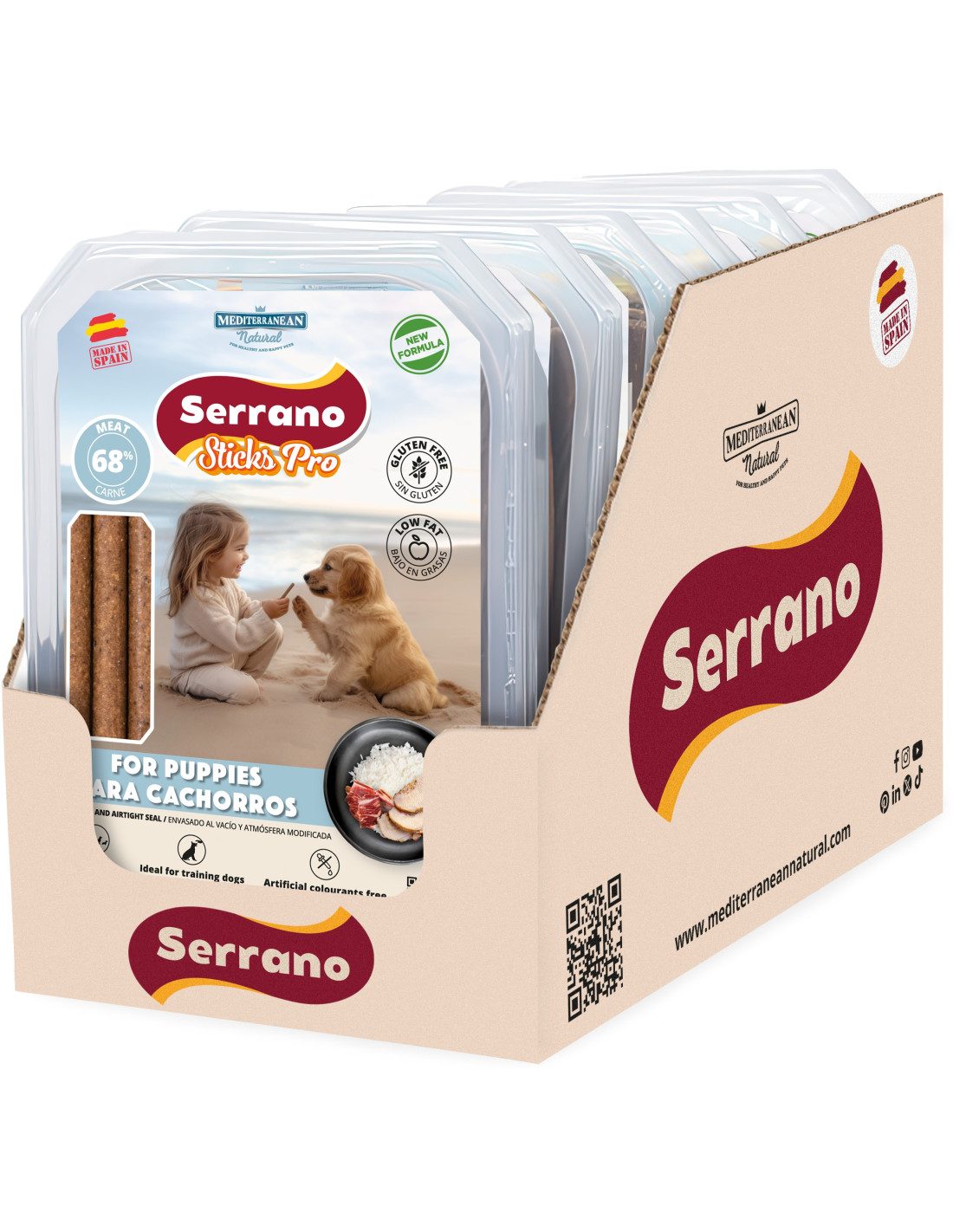 Gracias a su formato práctico, puedes llevarlos contigo y ofrecerlos en cualquier momento del día. Con Mediterranean Serrano Sticks Pro Puppy, garantizas una recompensa nutritiva que acompaña el crecimiento saludable de tu perro.